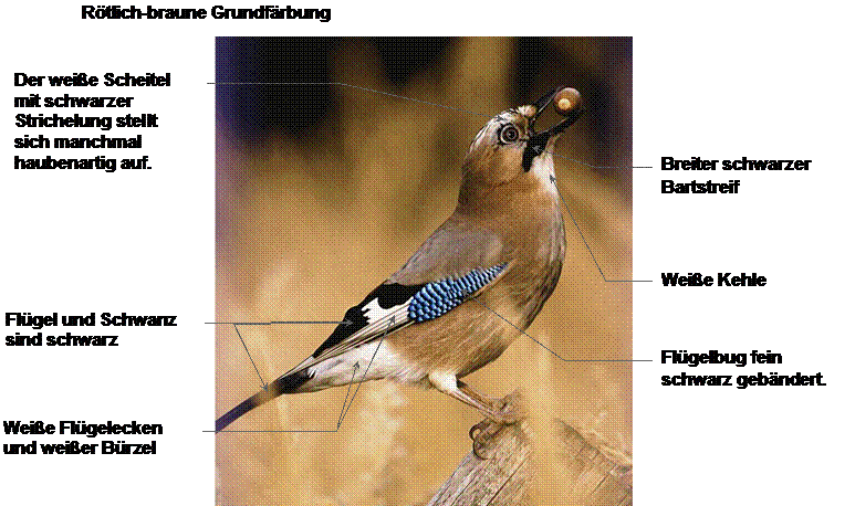 Der Eichelhäher ist ein sehr wachsamer Vogel. Er findet sich zur Nahrungssuche in kleinen