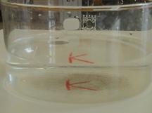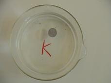 Becherglas mit Wasser; Pinzette; Aluminiummünze, Rasierklinge o.ä.; Seife