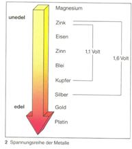 1) Man misst die Stromspannung die entsteht, wenn zwei Metallplättchen in